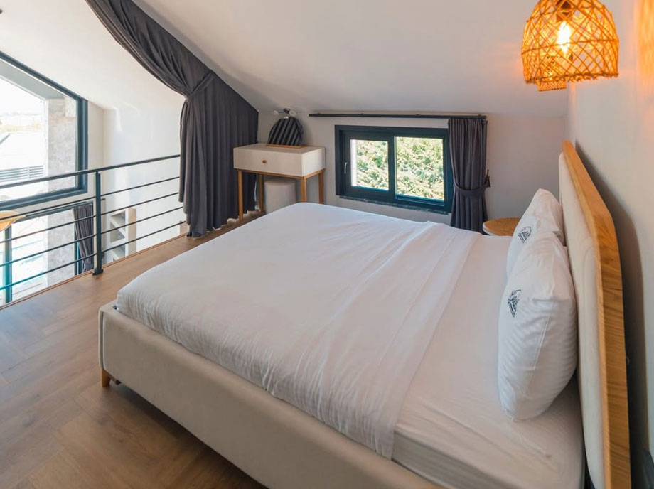 Tasarım detayları ve modern olanaklarıyla üst segment konfor sunan bu bungalov, özel havuzu ve manzarasıyla lüks bir tatil arayanlar için eşsiz bir seçenek.